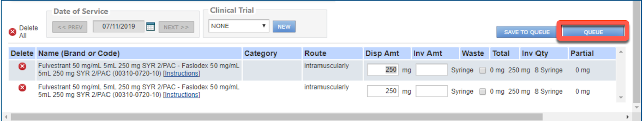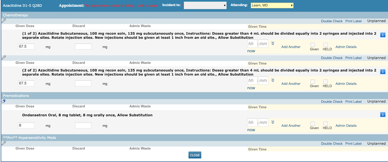 The Charge Capture Report reflects the total dose given and both administration charges.