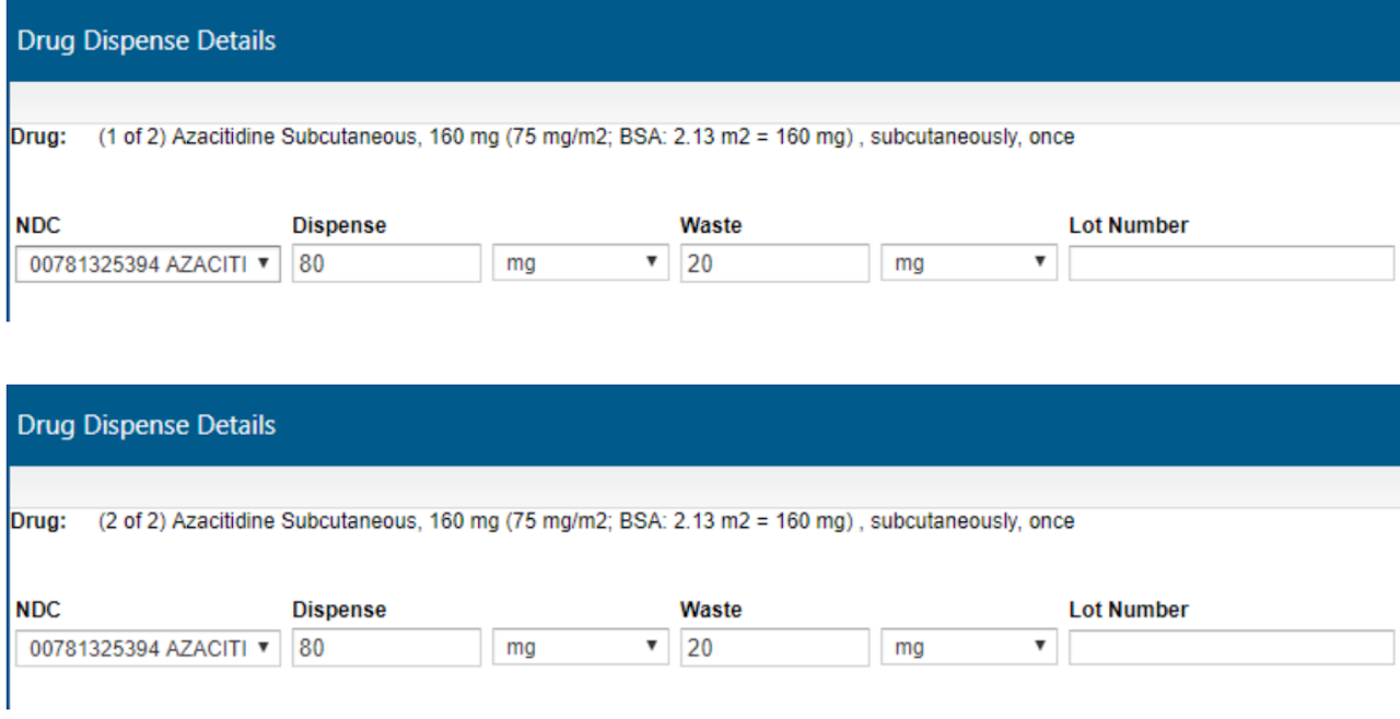 To ensure the drug dispensed in Lynx represents the accurate dose and waste for each route of administration, doses should be split when needed.