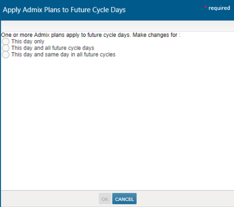 If you are presented with this prompt, choose which days you want to apply the Admix plan to.