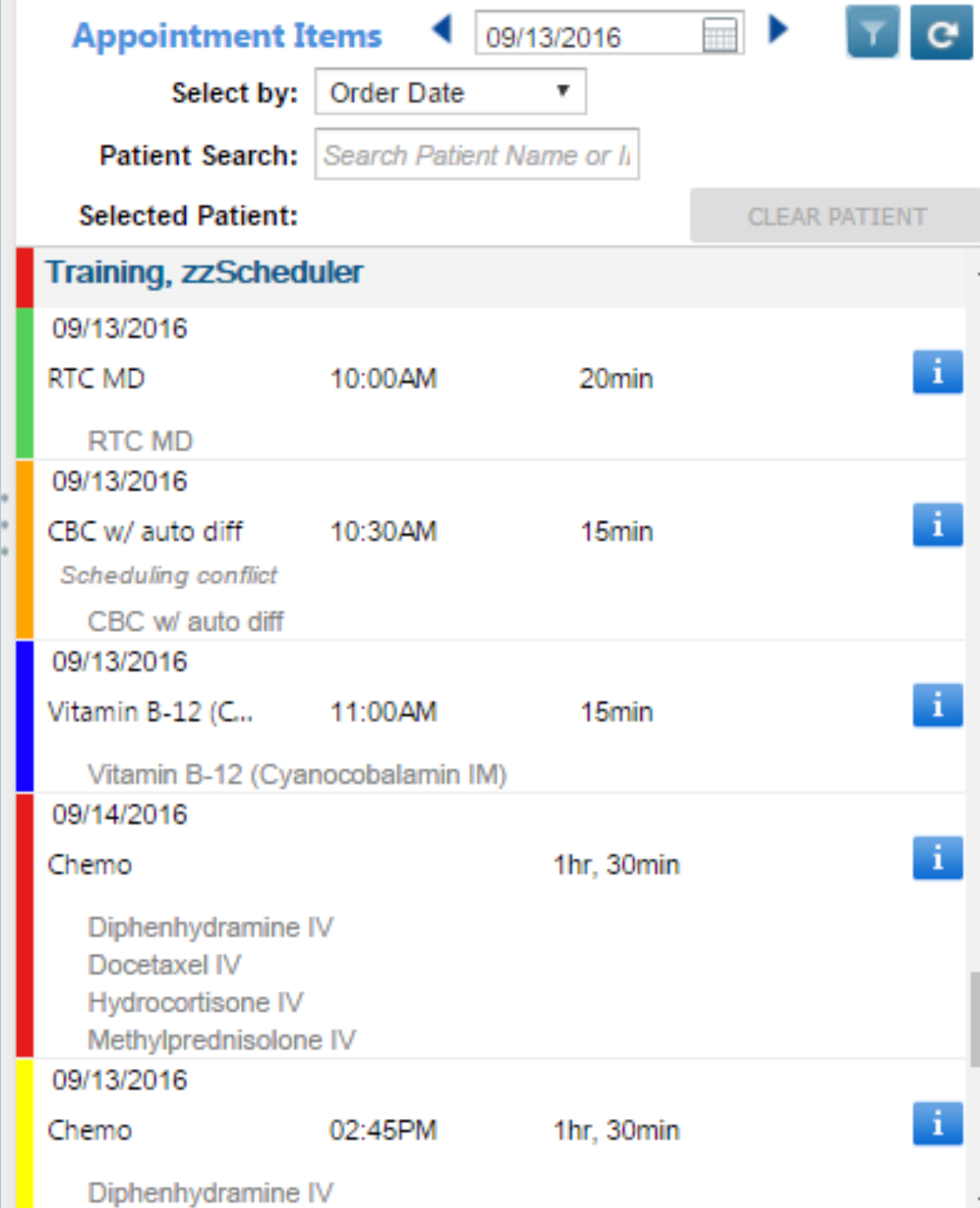 Appointment Items is the list of patients with orders or appointments that is to the left of the calendar in the Scheduler chart tab and Scheduler Queue.