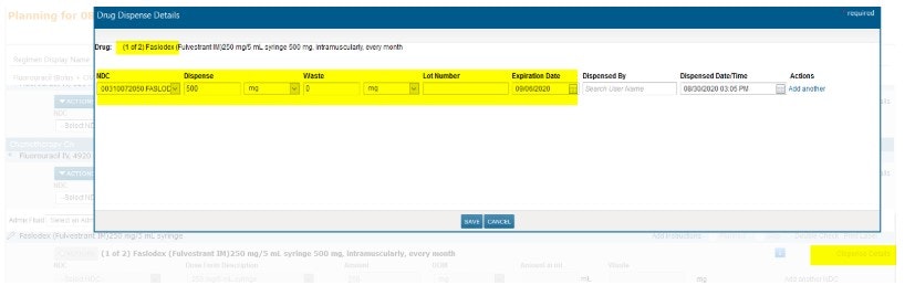 Go to ADMIX >>DISPENSE DETAILS to solve this and review each FASLODEX line.