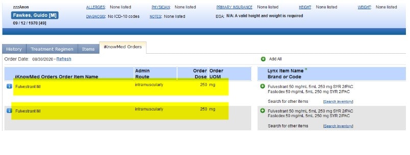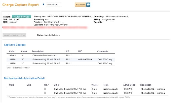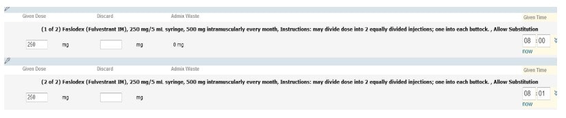 Faslodex (Fulvestrant) total dose incorrect on charge capture