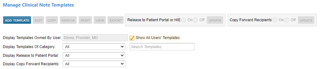 A Clinical Note Template is a quick and efficient way to create a re-usable note with a consistent format. Each Note Template is "owned" by someone at your practice and templates are customized for each person.