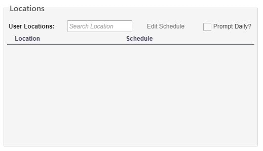 The Locations section, on the Permissions tab, lists where and when someone is working each day of the week. When they log in, iKnowMed defaults to the Location indicated by this Schedule, which makes it easier for them to log in.