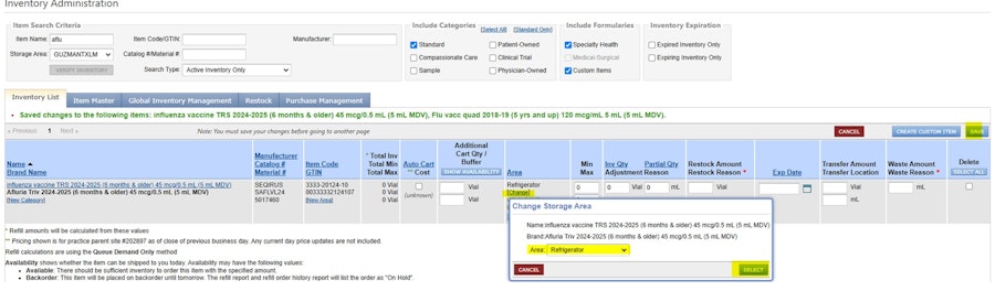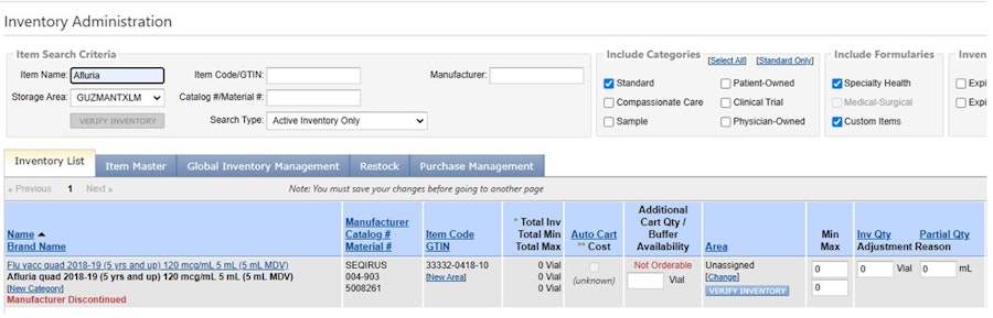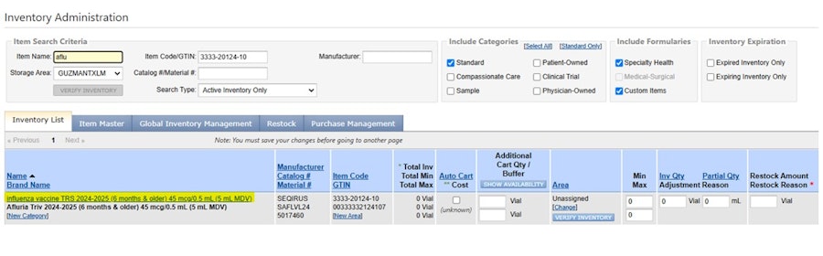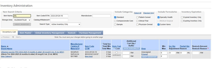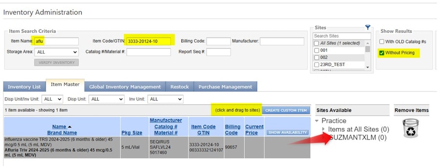 Drag and drop the verified item to your practice's inventory.
